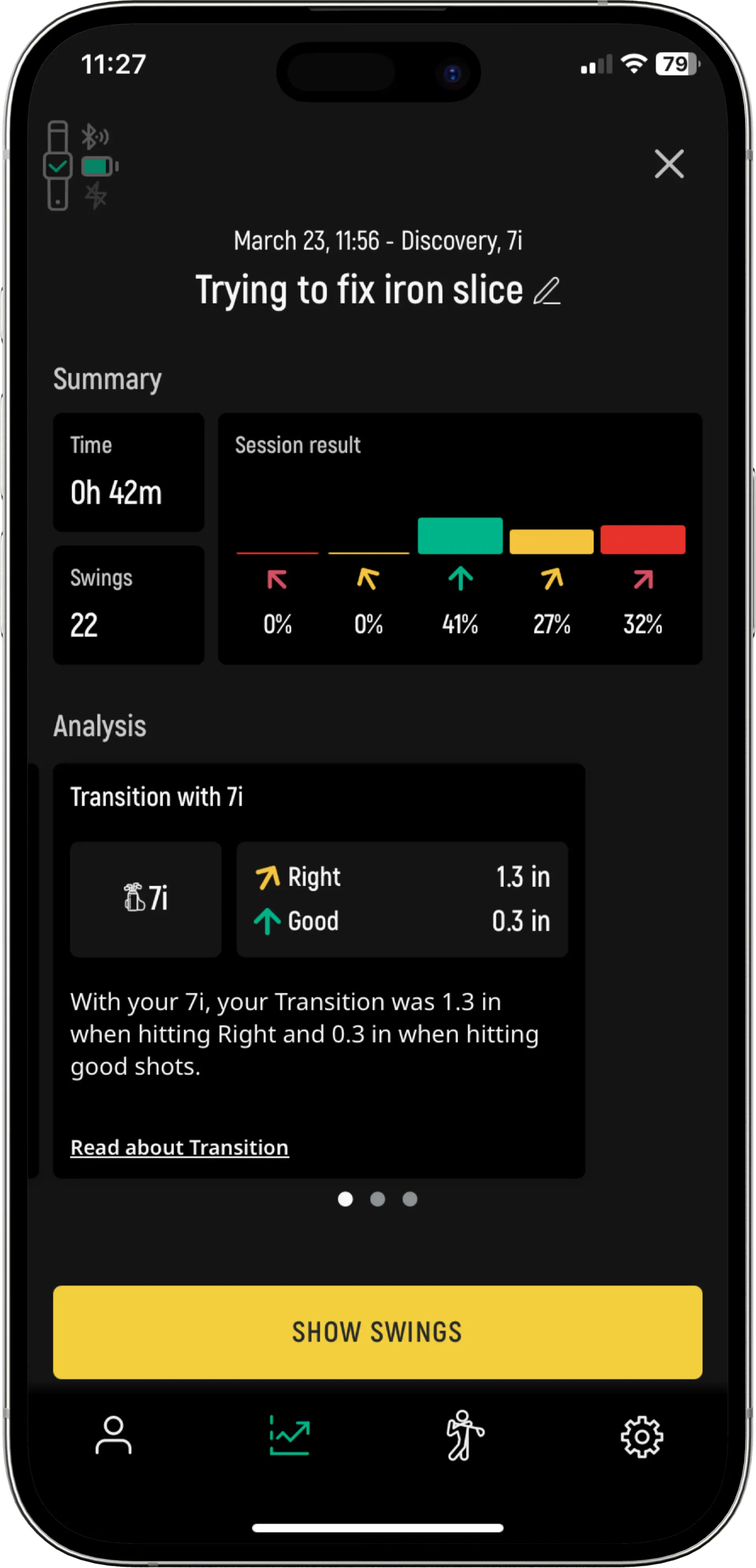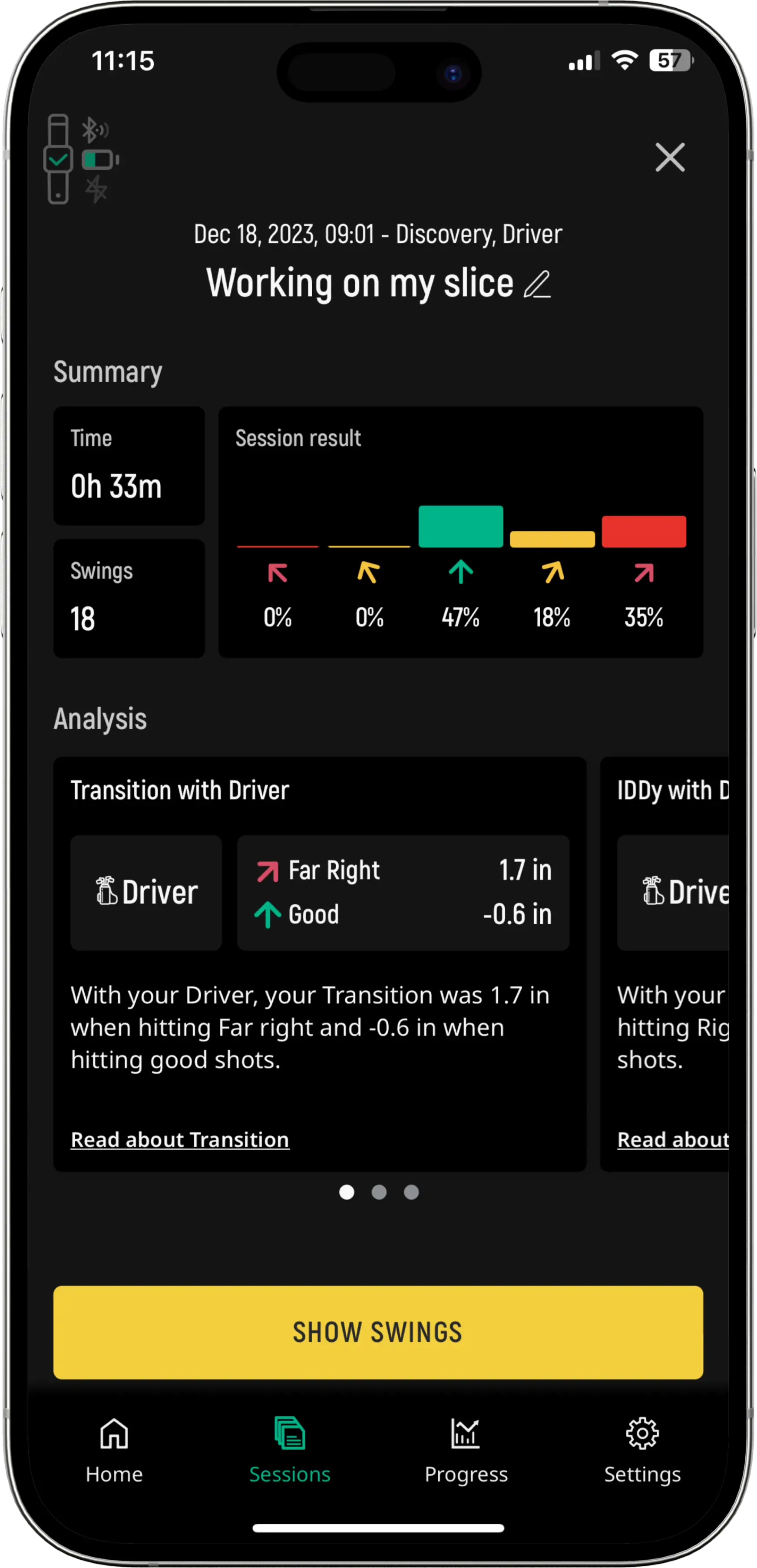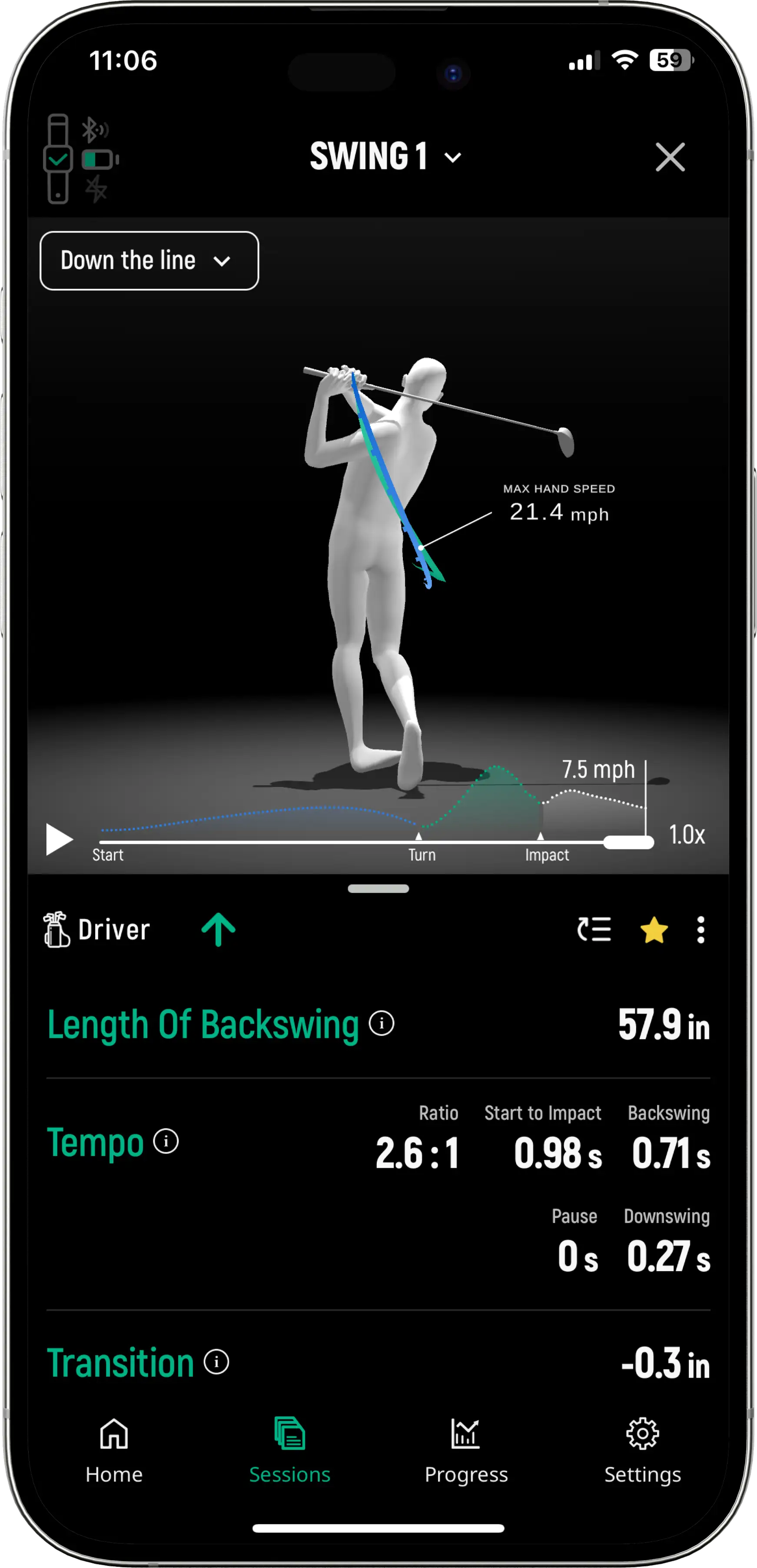 Go from calibration to swing analysis in a matter of seconds. From practice swings in your office to the tee shot on the 18th hole, deWiz provides personalized insights and actionable data on a variety of swing metrics to help golfers improve their game.